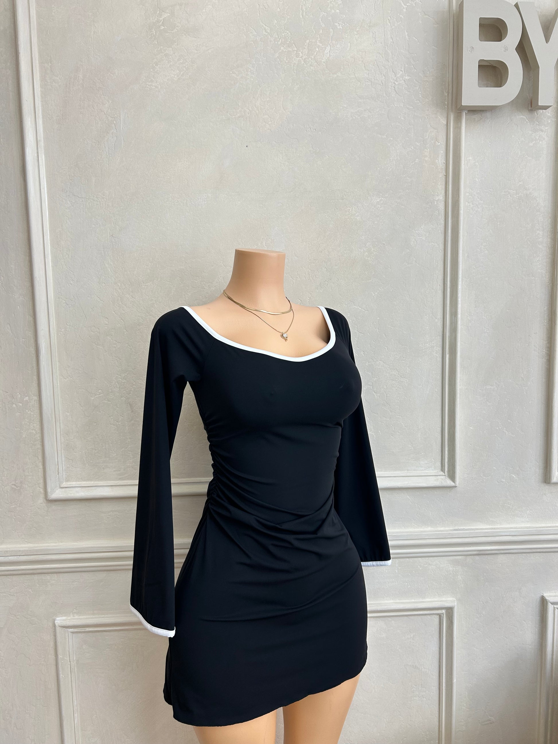 Black white trim dress